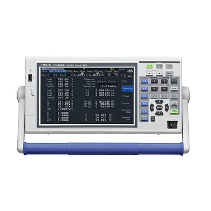 Hioki benchtop power meters and power analyzers are best in class power measuring instruments for measuring single to three-phase lines with a high degree of precision and accuracy. The PW3390 is a high-precision, broad-range power analyzer for measuring electrical power from DC to inverter frequencies, providing four input channels to support single- and three-phase inverter motor systems up to 4000 A AC/DC with superior accuracy.