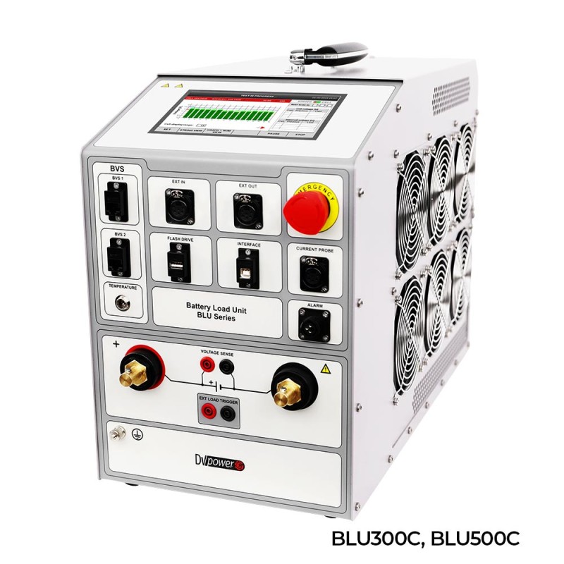 Battery capacity tester BLU-C is the latest solution from DV Power for conducting a comprehensive battery capacity test. This universal instrument is applicable to any battery string, such as lead-acid, Li-Ion, Ni-Cd, and others, with voltages up to 800 V DC. Additionally, when combined with Zero Voltage Discharge Module ZVD80, BLU-C enables full battery discharge down to 0 V with up to 60 A, required before battery recycling.
