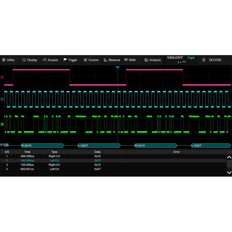 SDS3000HD-I2S - Siglent Oscilloscope Option - I2S trigger & decode (software)