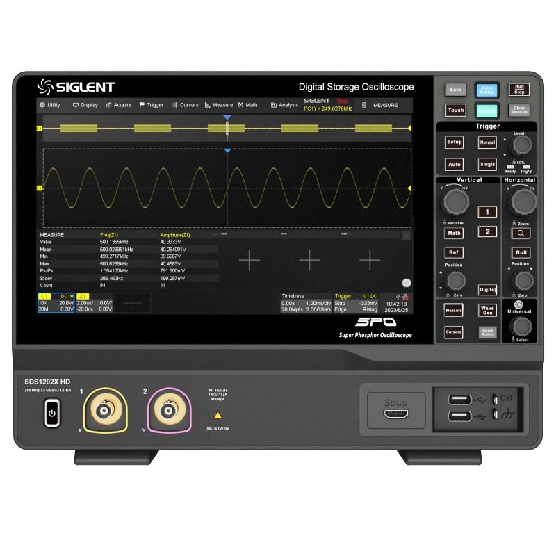 Siglent Oscilloscope - 100MHz, 2 channels, 2GSa/s, 12-bit high resolution, 100Mpts memory depth mixed signal oscilloscope; 10.1'' touch screen