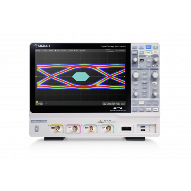 SIGLENT’s SDS6000A series Digital Storage Oscilloscopes are available in bandwidths of 2 GHz, 1 GHz, and 500 MHz, have a sample rate of 5 GSa/s (10 GSa/s ESR) at each channel, a maximum record length of 500 Mpts/ch, and display up to 4 analog channels + 16 digital channels mixed-signal analysis ability.