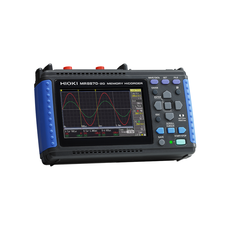 Hioki Memory HiCorders are high-speed waveform monitoring and recording devices that can simultaneously measure multiple quick-changing phenomena due to complete isolation between channels and from each channel to the ground. The MR8870-20 is a handheld data acquisition (DAQ) recorder built in with 2 analog channels and 2MW of memory, suitable for elevator maintenance, machine, motor and inverter fault analysis, testing and inspections.