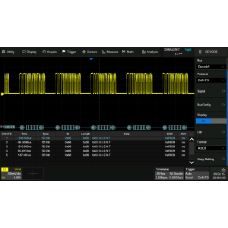 SDS2000HD-CANFD - Siglent CAN FD trigger & decode (SW)