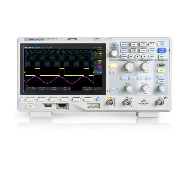 SIGLENT’s new SDS2000X-E Series Super Phosphor Oscilloscopes are available in two bandwidths; 200 MHz and 350 MHz. They each have a maximum sampling rate of 2 GSa/s and a standard record length of 28Mpts.The most commonly used functions can be accessed with its user-friendly one-button design.